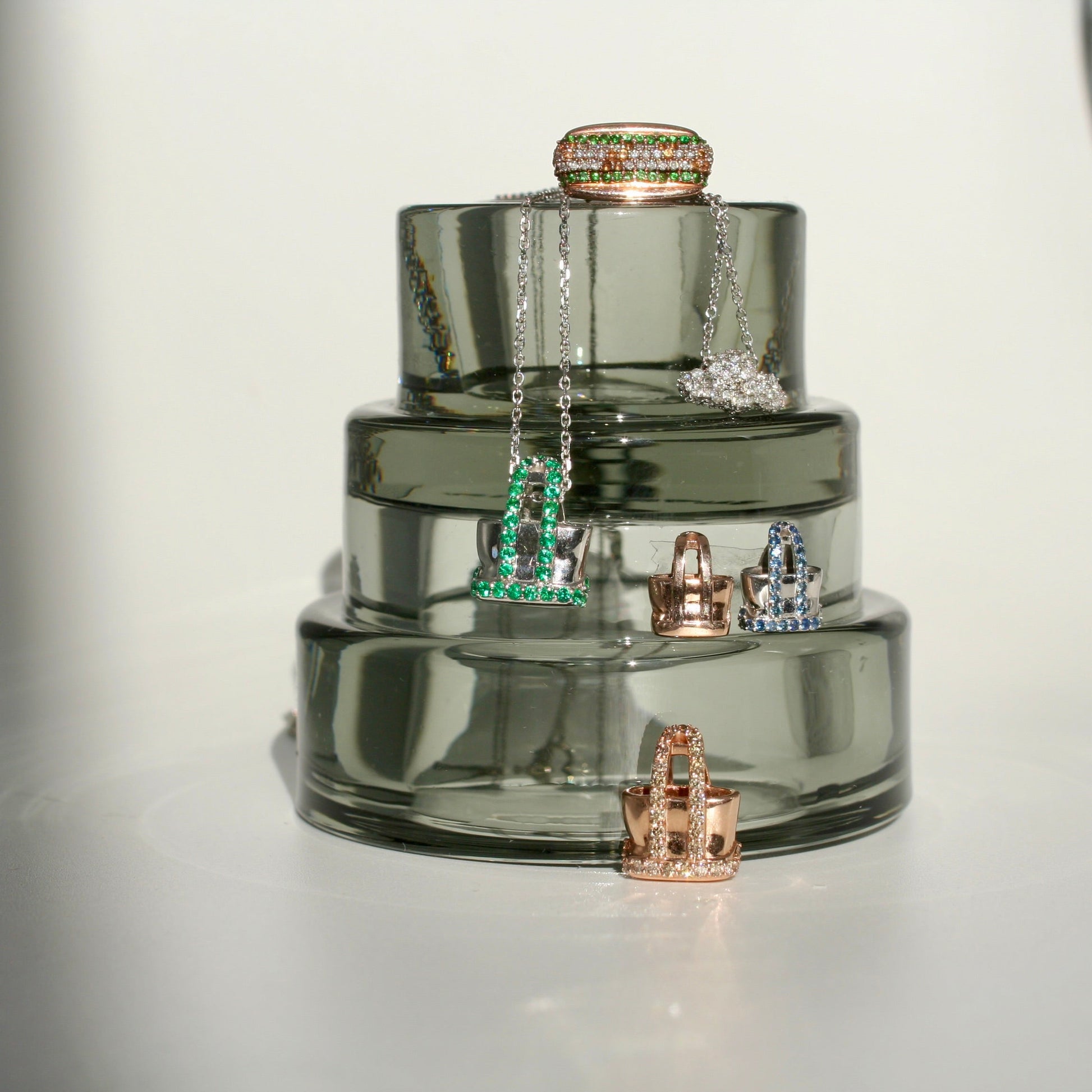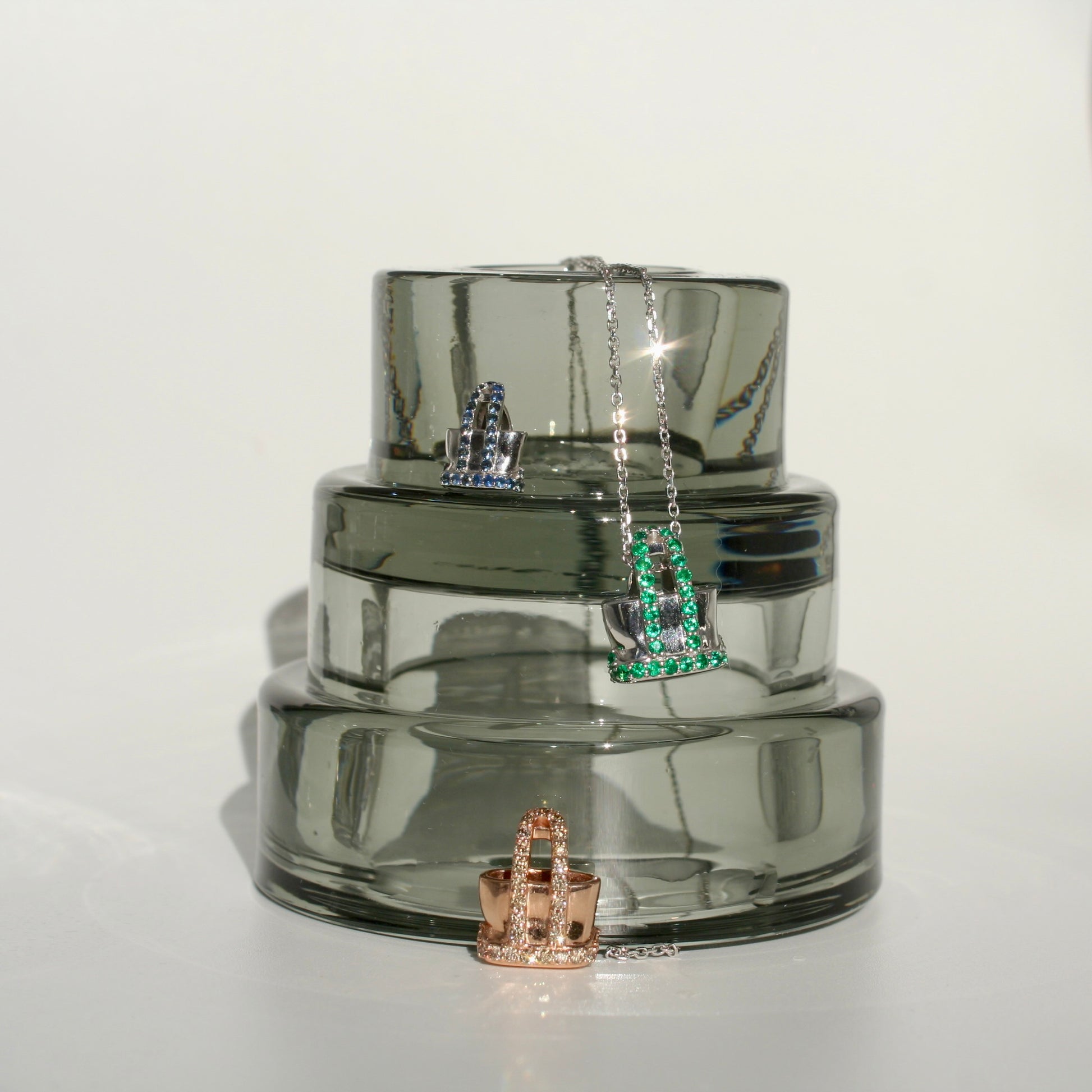 An ode to the iconic Boat and Tote and reimagined for everyday wear as a delicate charm. This piece can be customized like the canvas version with different colored handles. Please send an email to inquire on a specific stone if not listed below